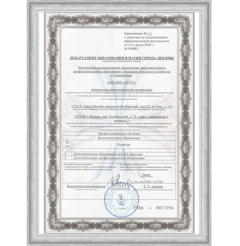 После прохождения программы повышения квалификации выдается Удостоверение о повышении квалификации.